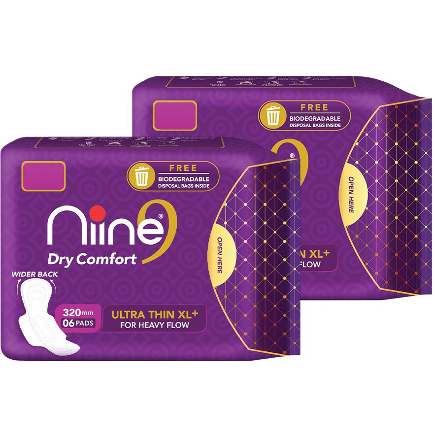 Niine Dry Comfort Ultra Thin Xl Sanitary Napkins For Women 12 Pads Count Sanitary Pad Pack Of 2 Shopee India